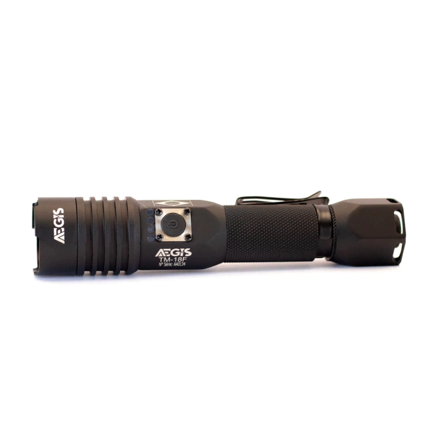 A Lanterna Tática AEGIS TM-18 é a primeira desenvolvida e fabricada no Brasil. Foi projetada para atender a demanda por um equipamento tático de iluminação de qualidade e tecnologia para os mais diversos setores da sociedade, como profissionais da segurança pública, militares, equipes de salvamento e resgate, caçadores e demais segmentos. Para isso, a lanterna conta com um LED de alta potência de 3ª geração, o mais moderno da atualidade, iluminando com nitidez até 200m de distância e com uma autonomia em modo econômico de até 18 horas de duração de bateria.